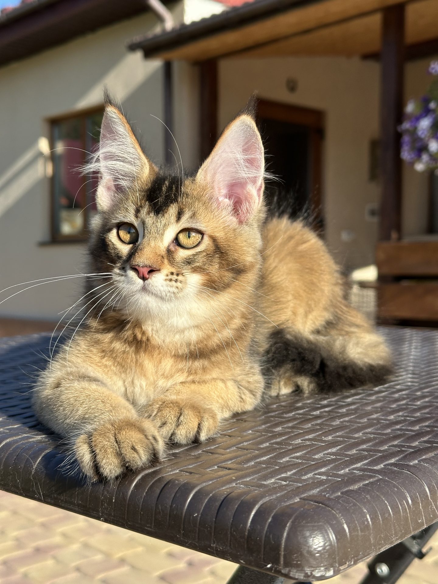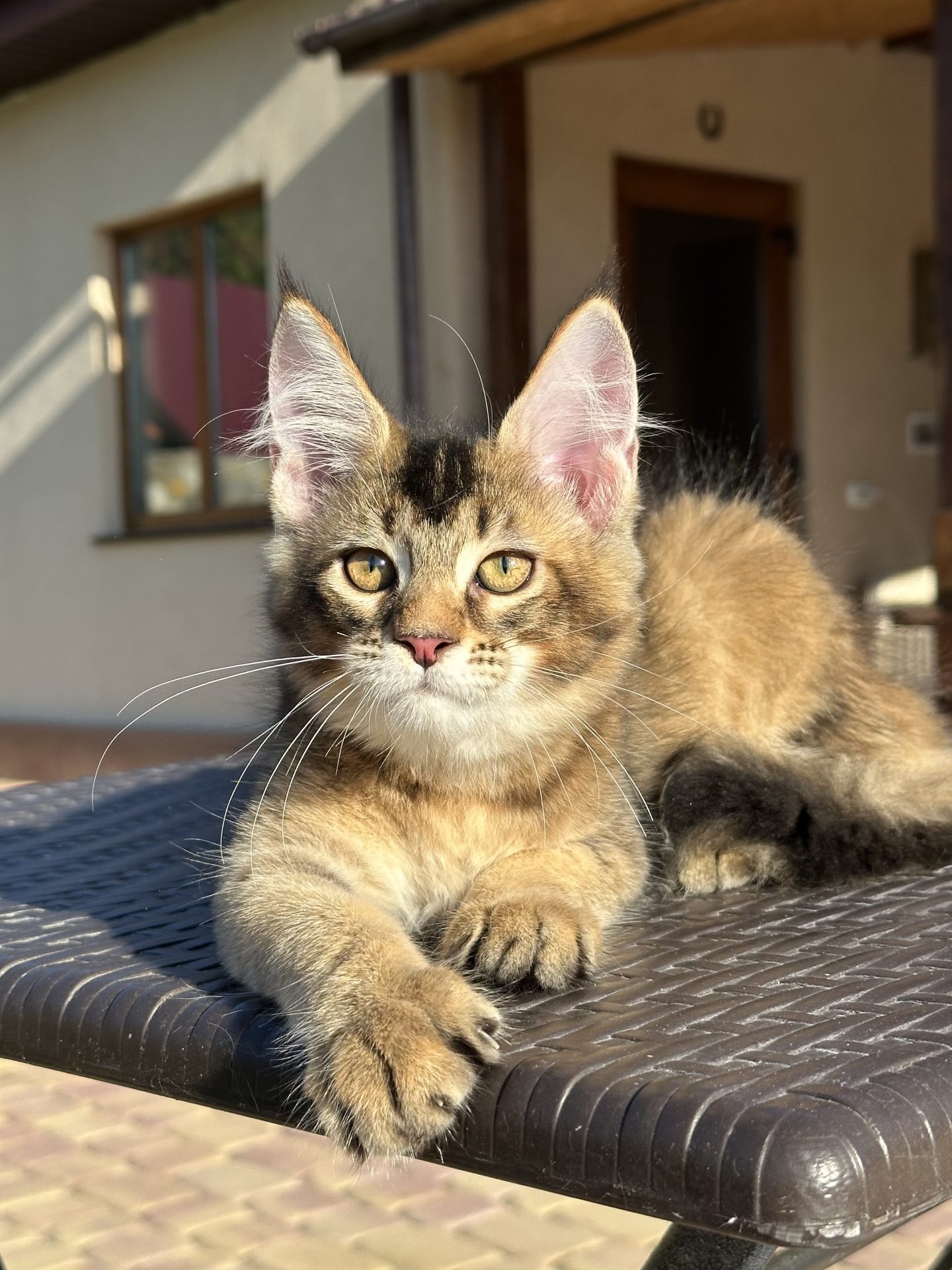 Arinecoons Infinity kocię Maine Coon Black golden ticked tabby kotka o doskonałym typie rasowym i eleganckim wyglądzie